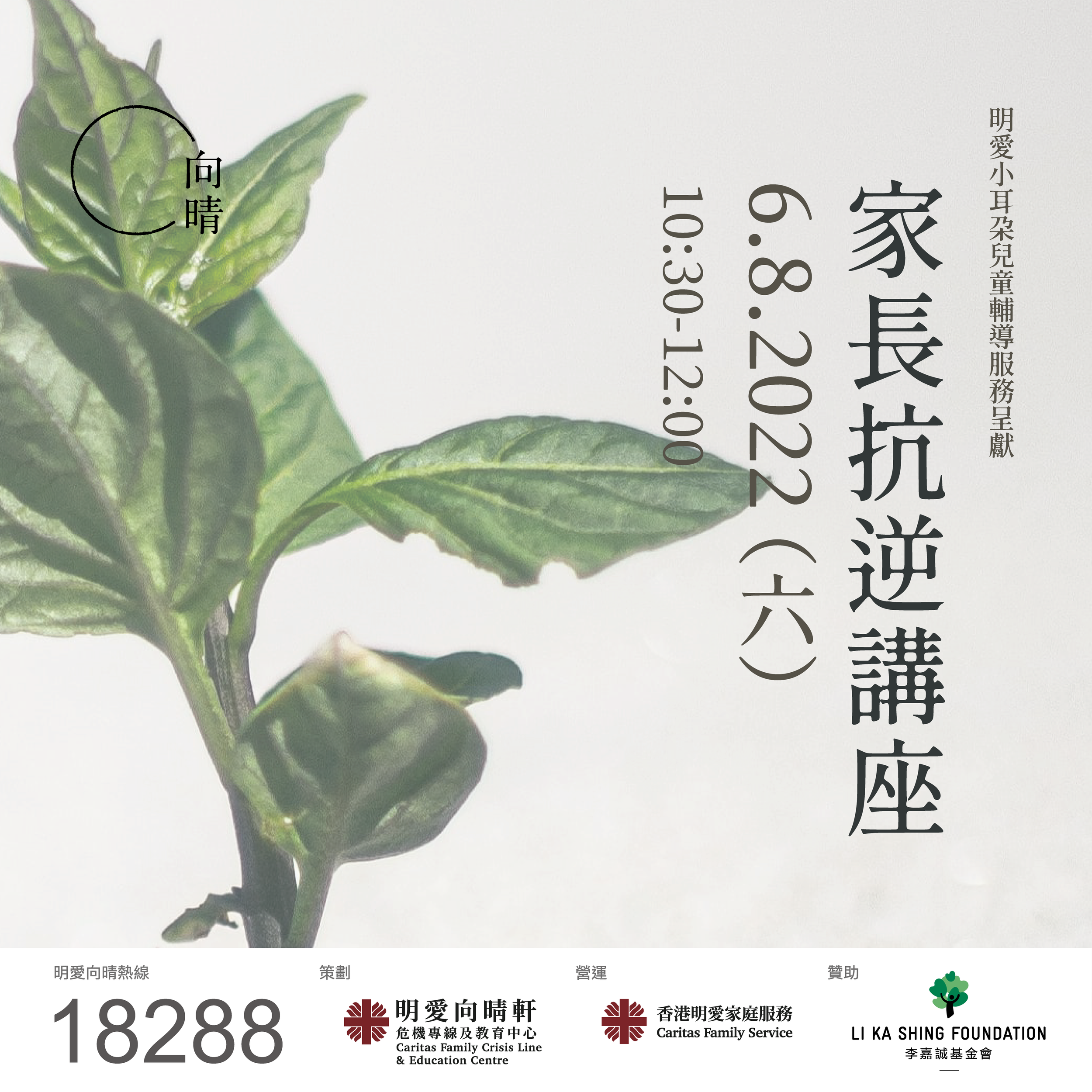 疫情期間,及即將疫後復常,不論是小孩還是家長,都可能會感到心煩或焦慮,或者手忙腳亂,無從入手。如果你也想幫自己及子女在抗疫期間的「壓力處理」及疫後「適應」作更好的準備,歡迎報名參加《家長抗逆》講座。